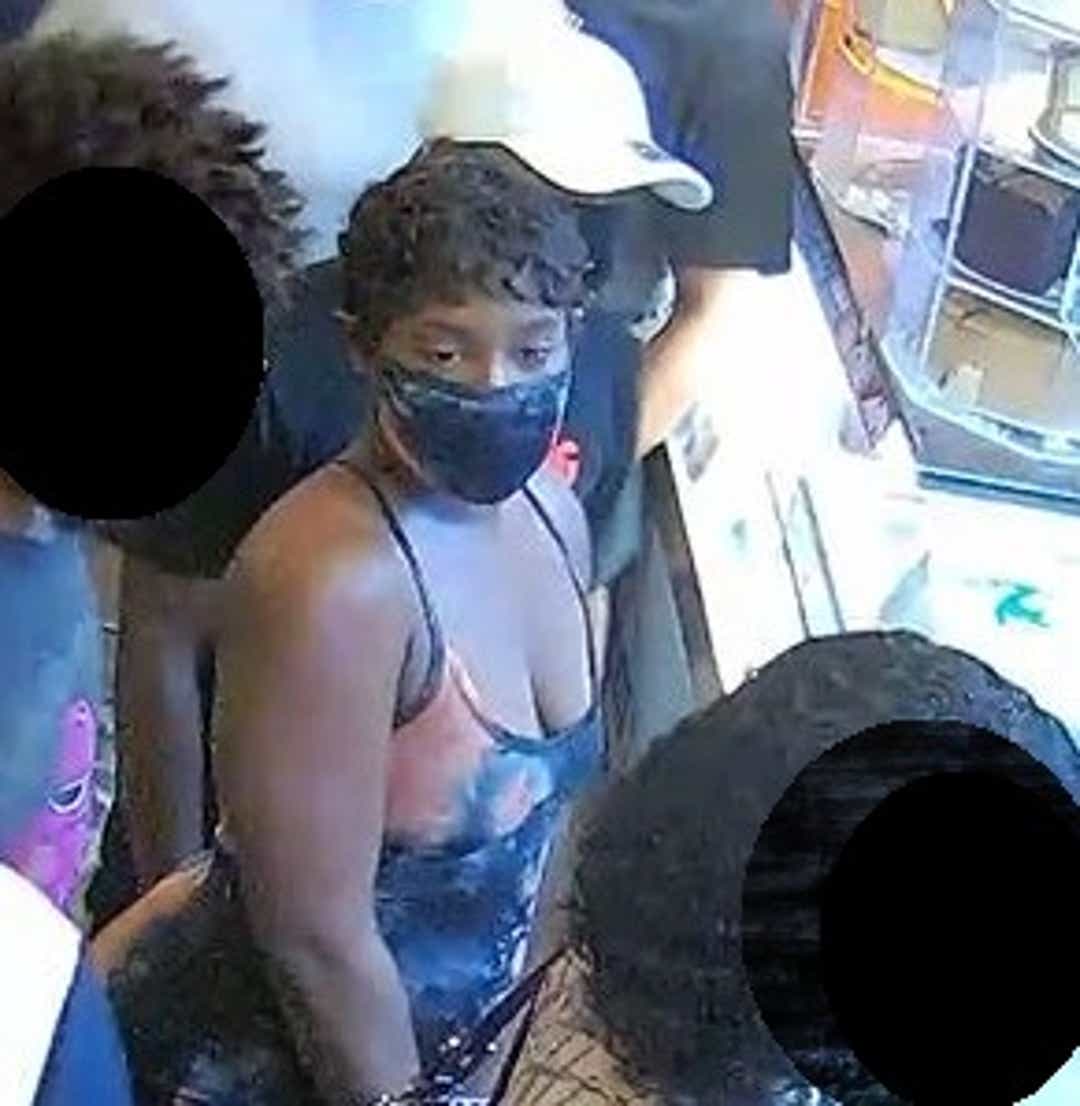 The first person of interest is described as a female with short dark hair and wearing a multi-color long, black dress. The woman was seen with the suspect before the shooting and is thought to have information about the incident, police said.