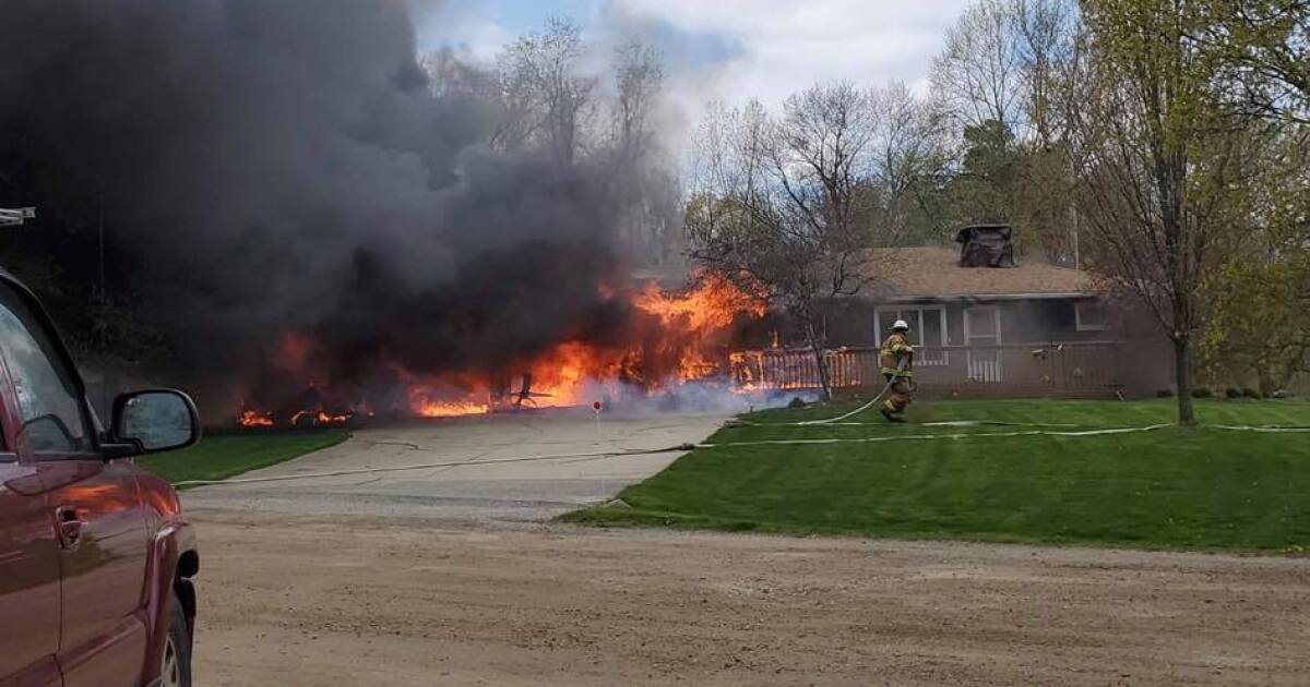 In a post on their Facebook page Saranac Community Fire Department said there was heavy smoke visible from three miles away at about 11:30 Thursday morning. The garage and part of the house was engulfed in flames when they arrived.